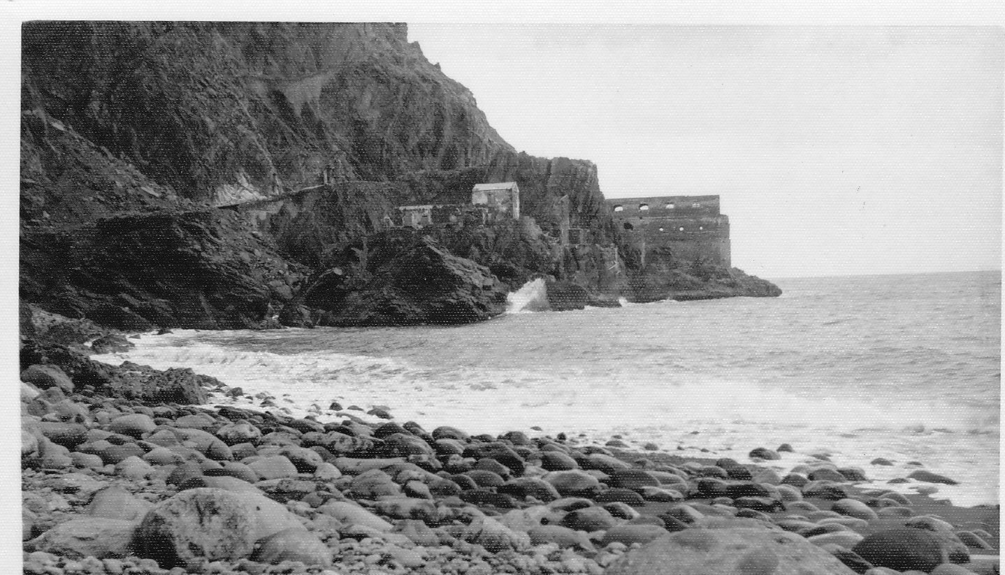 – Foto facilitada por el “Archivo General Insular de La Gomera”. La imagen es del “Pescante Viejo”, o “Pescante de Los García”, que se construyó a finales del S. XIX en La Playa de Vallehermoso y funcionó durante la primera década del S. XX, hasta que fue abatido por la mar.