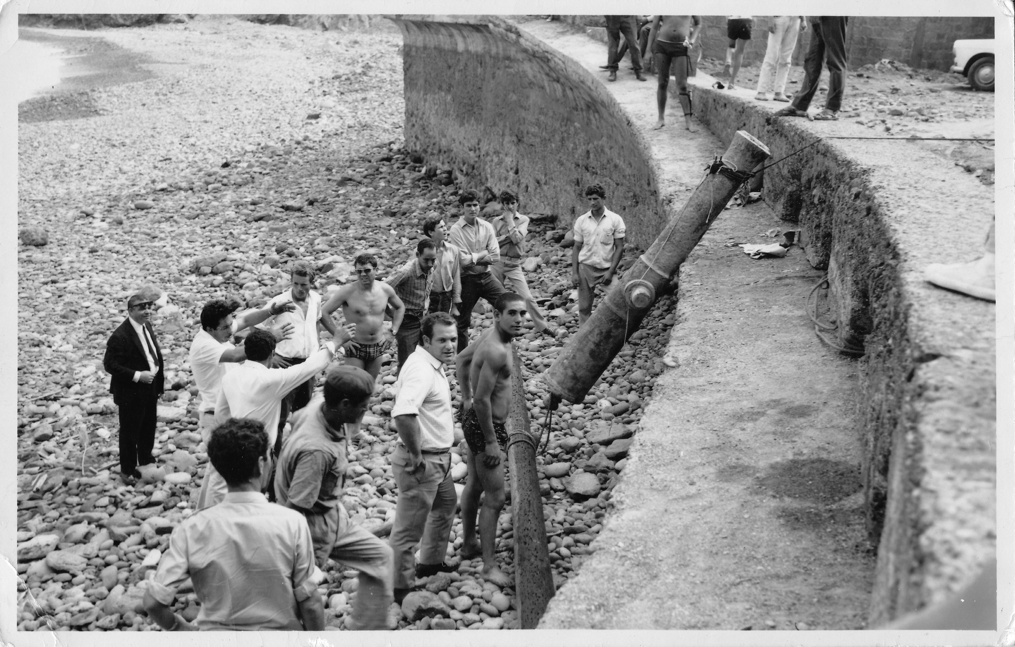 Los submarinistas D. Antonio Ballesteros y D. Jesús Martínez fueron los encargados de realizar las tareas de sumergirse para atar cada cañón a una especie de globo que, inflado con aire comprimido, permitiría elevar el cañón desde el fondo marino hacia la superficie. A su vez, los submarinistas constataron la presencia en la zona de otros cañones, aunque, dada las fechas y próxima llegada del invierno, planearon intentar extraerlos en algún periodo de calma marina del siguiente año.
