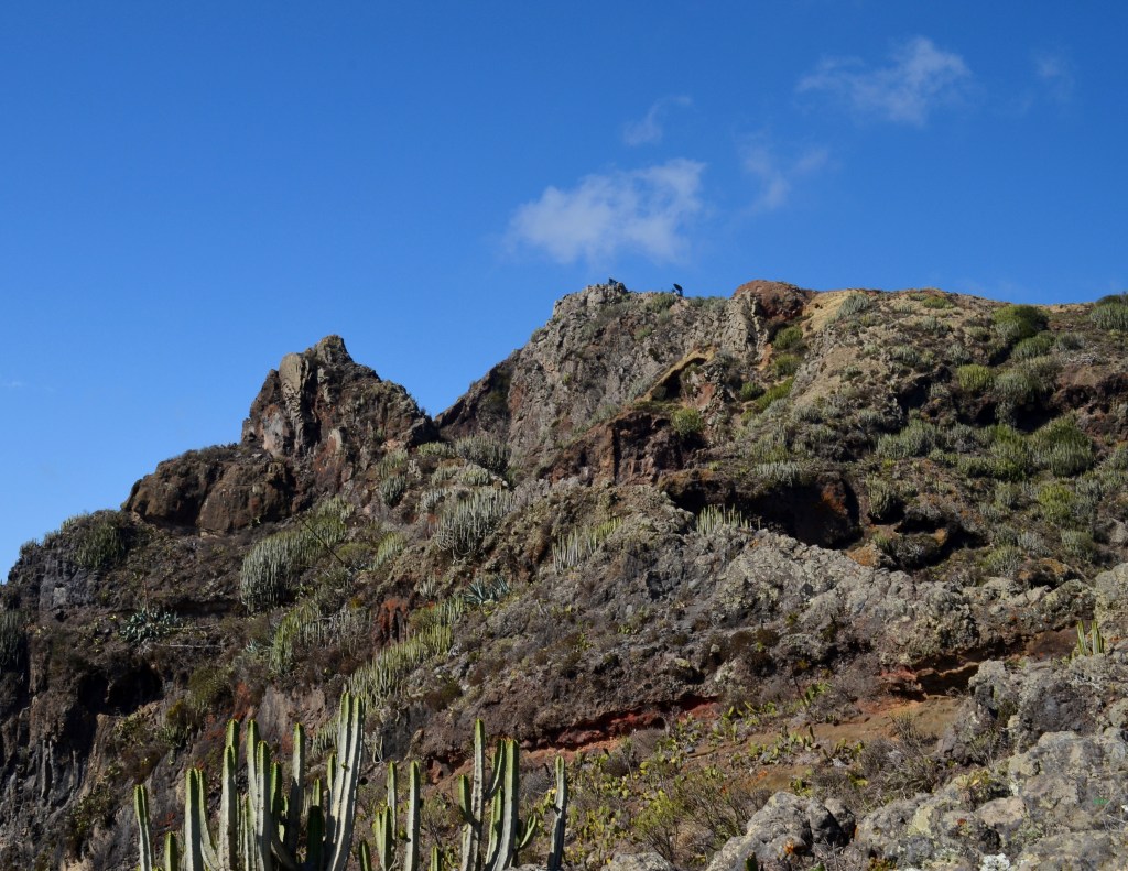 La subida se halla cada vez más difícil, y cuando volvimos los ojos al precipicio que estaba á nuestros pies no pude menos que recordar al viajero J. Leclereg, quien, en vista de que sus colegas del Club Alpino Francés gustaban de emociones fuertes les aconsejó que hicieran la prueba de ir por el camino de Taganana al Draguillo, empresa mucho menos loca y arriesgada que la en que nos hallábamos en aquel momento metidos.