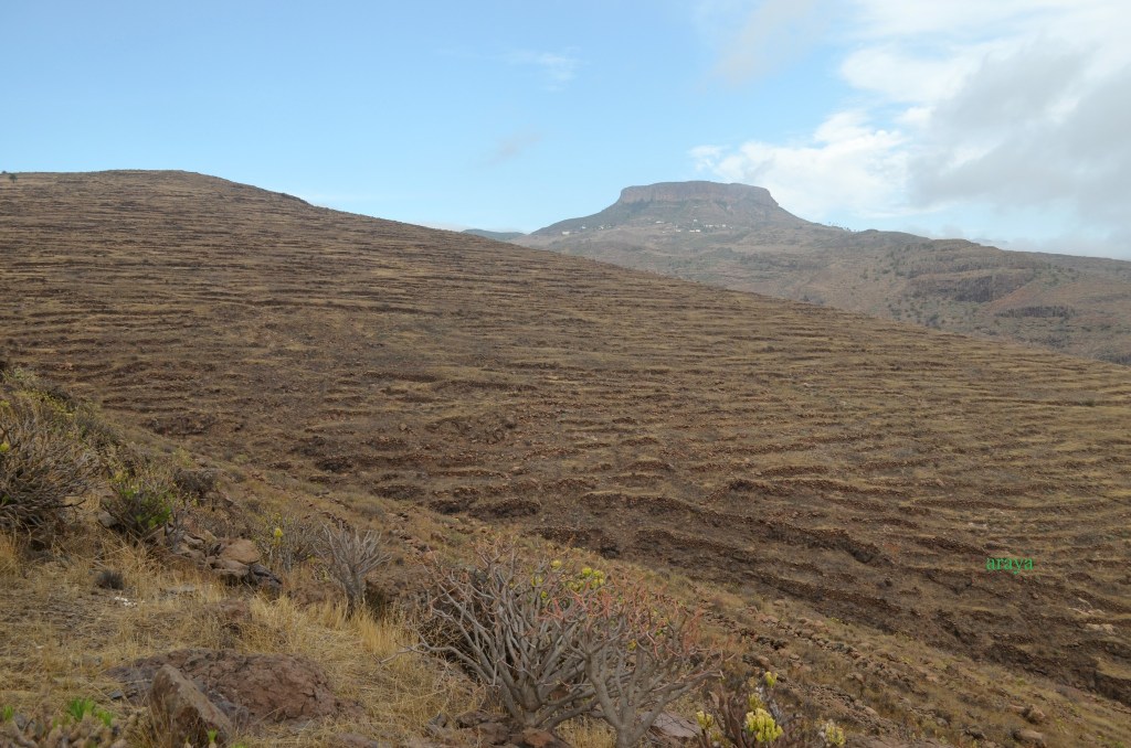 Espacios en laderas y barrancos fueron “sorribados” para abrir “bardos” y levantar paredones de “bancales” dónde practicar agricultura de cultivos para obtener productos de autoconsumo así como de exportación.